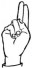 На ћирилици написано КОСТАДИН ДРНДАРЕВИЋ састоји се из 18 слова [?]. Исписано ћириличном једноручном азбуком за глувонеме: